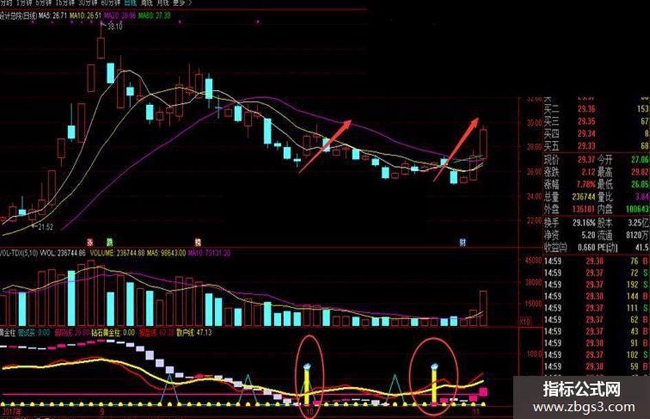 通达信短线神器金钻黄金柱指标助你翻翻,准确率94.25%(无未来