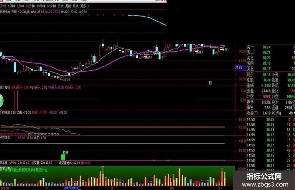 1250均线+综合指标+绝密顶底+千军寻底(源码 主图+副图 通达信 贴图)希望大家喜欢