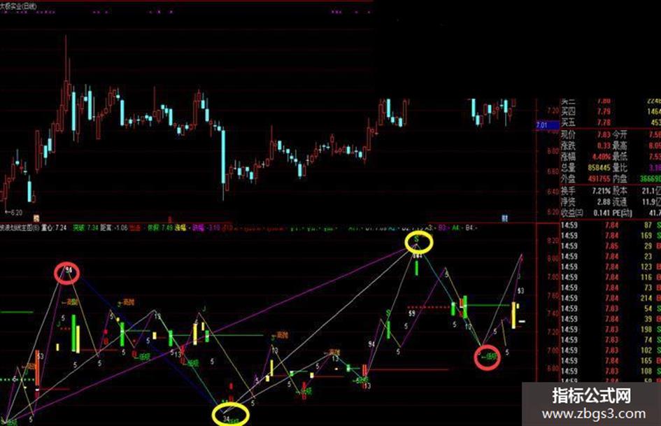 通达信波浪理论自动划线低吸建仓及高抛逃顶指标(指标+主图+贴图