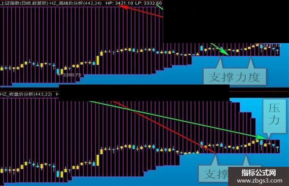 持股区域:当满足条件A>B时,在A和B位置之间画柱状线,宽度为2,0不为0则画空心柱.,画黄色