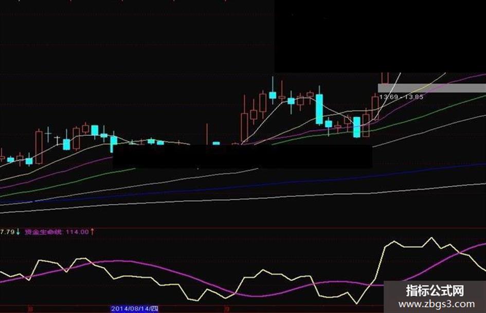 个股资金线:MA(C,1)/MA(REF(C,18),18)*100,LINETHICK2,COLOR00FFFF; 资金生命线:MA(FORCAST(个股资金线,20),6),COLORMAGENTA,LINETHICK2;