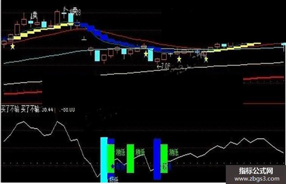 DRAWTEXT(CROSS(买了不输,-120),-80,'★:较低'),COLORBLUE;