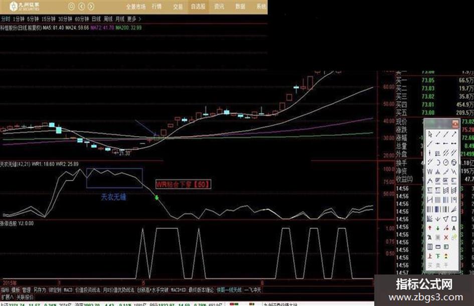 天衣无缝[WR威廉] N 2.00 100 42.00 N1 2.00 100 21 WR1:100*(HHV(HIGH,N)-CLOSE)/(HHV(HIGH,N)-LLV(LOW,N)); WR2:100*(HHV(HIGH,N1)-CLOSE)/(HHV(HIGH,N1)-LLV(LOW,N1));