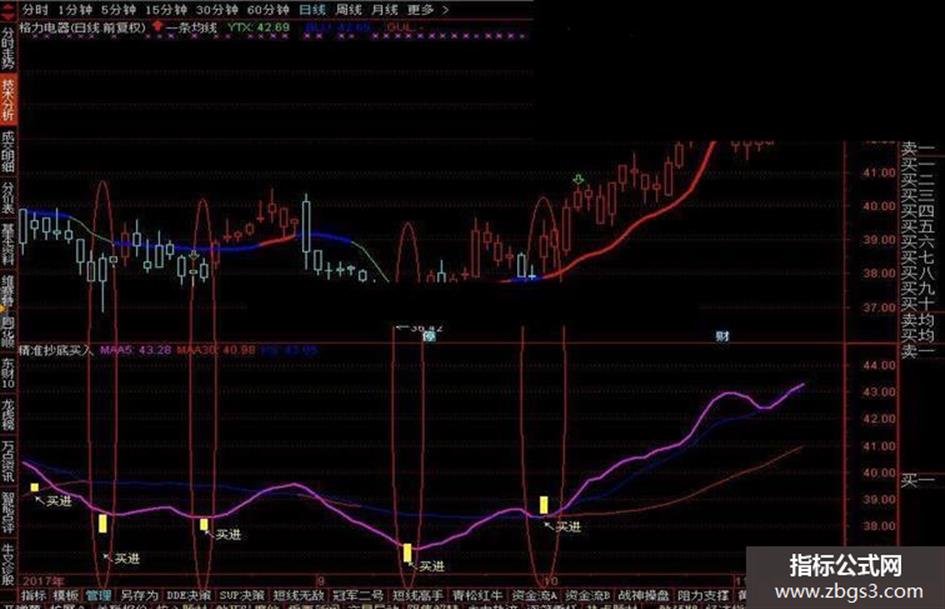 持币区域:当满足条件A量价抄底赋值:收盘价的2日指数移动平均的2日指数移动平均的2日指数移动平均的2日指数移动平均,线宽为4,COLOR0000FF