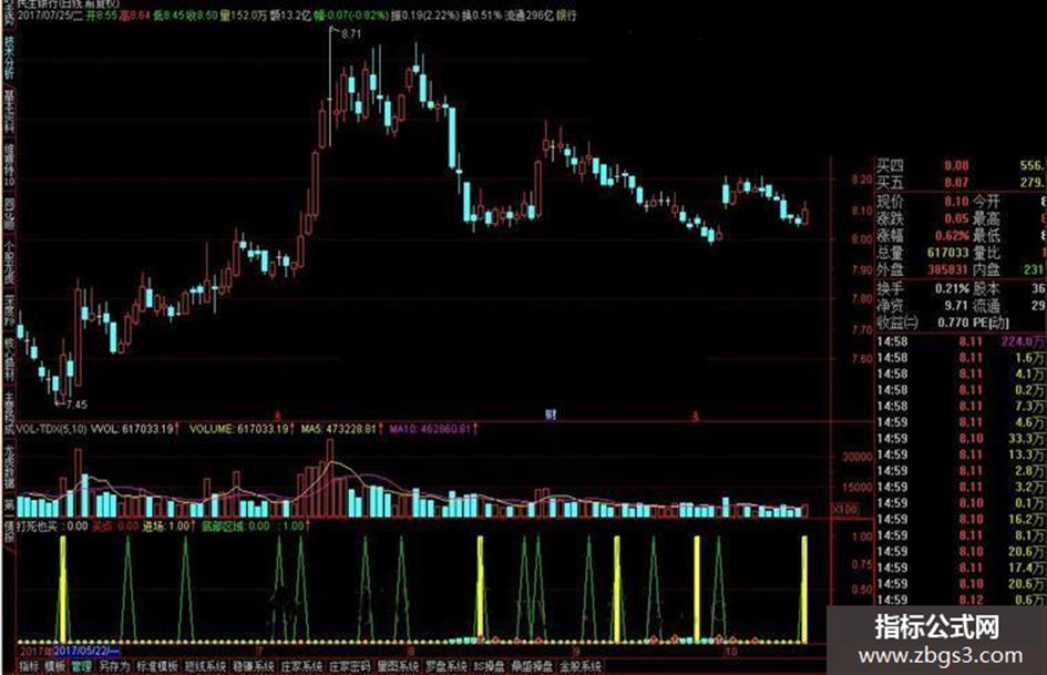 短线买点:=IF(SS>13,MA(SS,2),SS)/6;