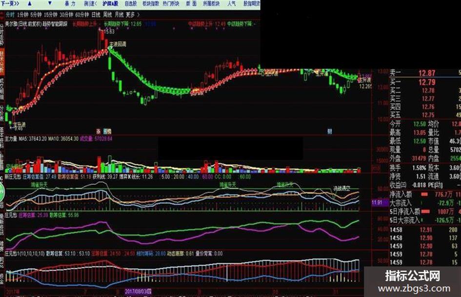 趋势线:=(MAH+MAL)/2 COLORGREEN,,LINETHICK2;