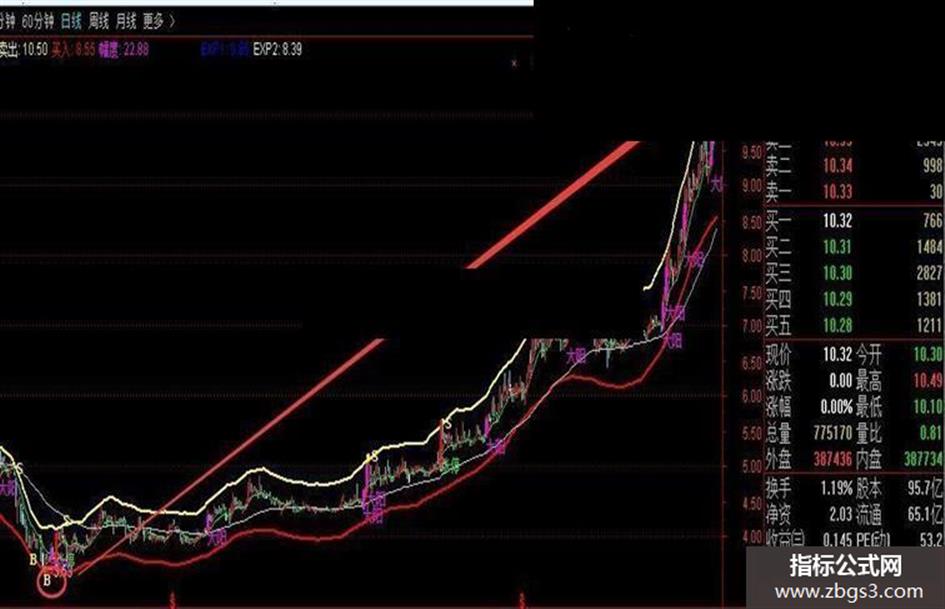 持股区域:当满足条件A>B时,在A和B位置之间画柱状线,宽度为2,0不为0则画空心柱.,画黄色