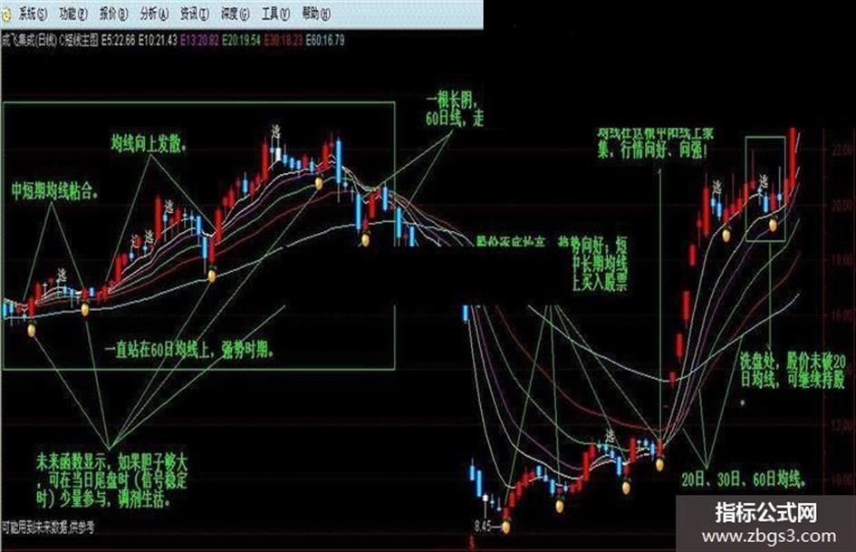 主图结合K线及短、中、长期均线,进行短中期买卖股票操作: