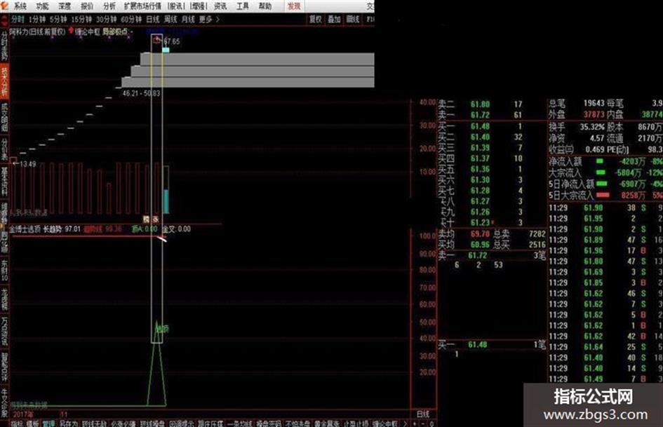 顶A:IF(顶>REF(顶,1),50,0),COLORGREEN;