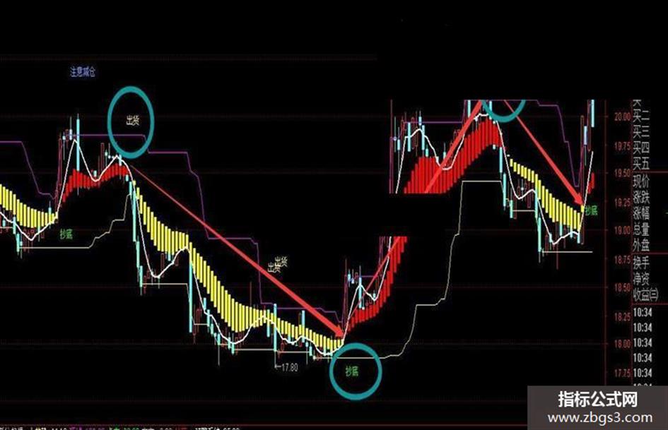 持股区域:当满足条件A>B时,在A和B位置之间画柱状线,宽度为2,0不为0则画空心柱.,画黄色