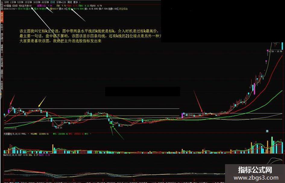 先上图,该主图是我结合量学及传统指标做出来的,我叫它是标k主升浪,该主图由于划线和k线变色,所以有未来函数,其实该主图实际没有未来函数的,由于我是小白,经过一年多才弄出来的,故加密了,不喜欢的不要喷