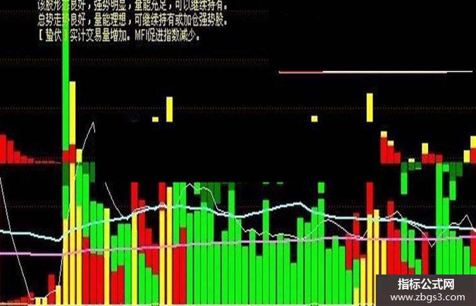 DRAWTEXT_FIX(MMM3,0.10,0.10,0,'[伪装]实计交易量减少。MFI促进指数增加。'),COLORGREEN;