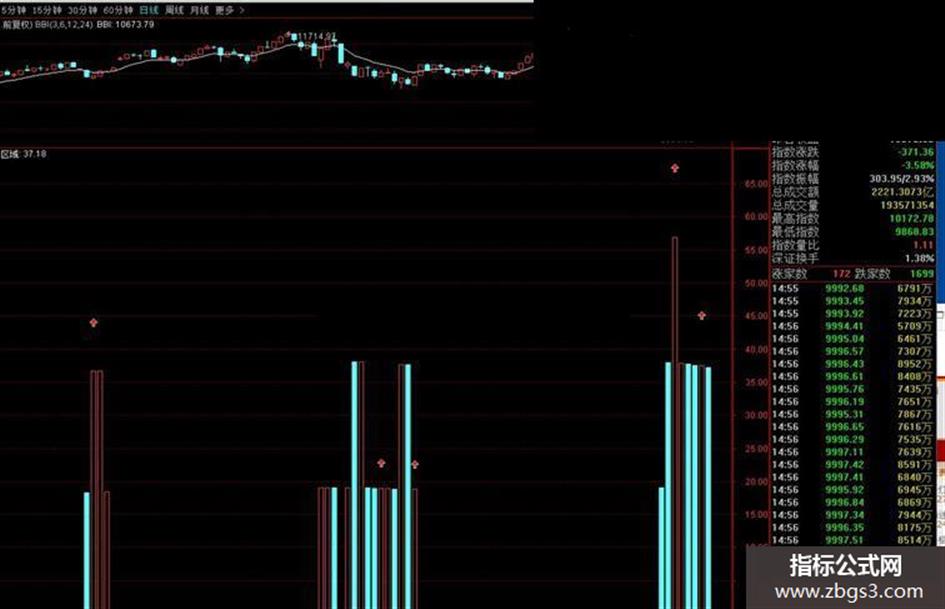 底部区域指标,你相信它的神奇准确性吗?出现红绿柱的地方是寻底下跌阶段,没有红绿柱的地方是放心上涨阶段,再出现柱子就要注意风险了!当然了出现红绿柱的地方当天是红柱,肯定是收阳的,这时抢反弹就要灵活机变了!