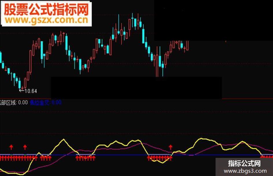 低位金叉:长期线<15 AND REF(长期线,1)<15 AND 中期线<18 AND 短期线>REF(短期线,1) AND CROSS(短期线,长期线) AND 短期线>中期线