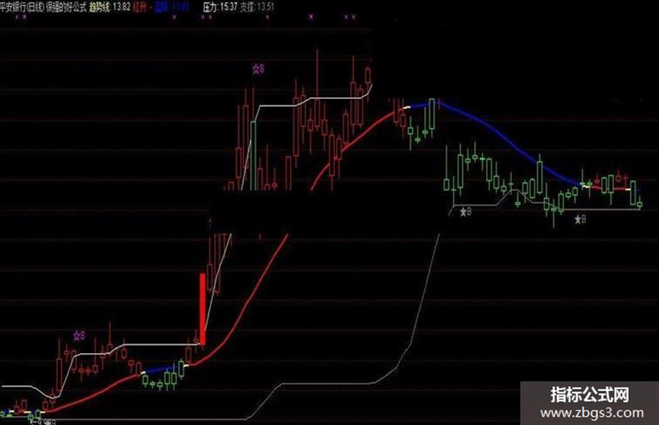 蓝降:IF(重心<趋势线,趋势线,DRAWNULL),COLORBLUE,LINETHICK2;