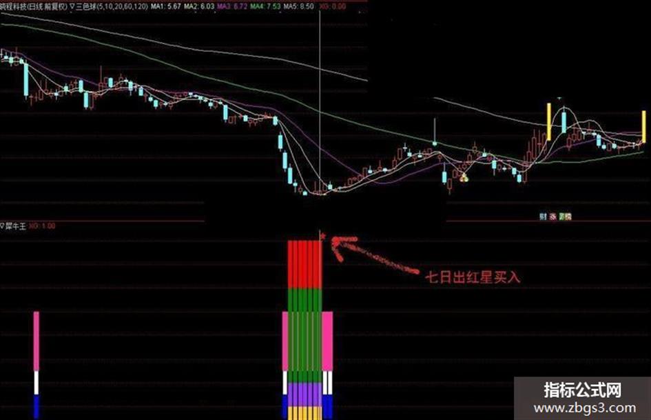 犀牛王是犀牛中的庞然大物,它身强体壮,体长5米,身披厚甲,额部长着一对2米长的实心大角。犀牛王副图是一个精准的寻低指标,依据量能聚散,勾画犀牛王的高大形象。量能不够,耐心等待,一旦量能积聚到一定程度的时候,会出现红星买入信号。