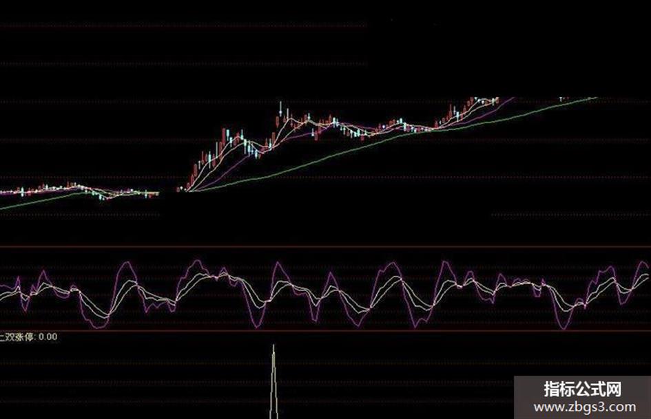 线上双涨停:IF(BBJ>=4 AND BBJ<=10 AND ABS(KX)<=12 OR (BBJ>10 AND BBJ<=21 AND ABS(KX)<=14) OR (BBJ>21 AND BBJ<=35 AND ABS(KX)<=15) OR (BBJ>35 AND BBJ<=55 AND ABS(KX)<=16) OR (BBJ>55 AND BBJ<=89 AND ABS(KX)<=17) AND COUNT(ZF>=9.6,4)=1 AND ZF>=9.6 AND (UPA>=2 AND UPJ>=2 OR (UPA>=1 AND UPJ>=3)),UPJ+UPA+2,0);
