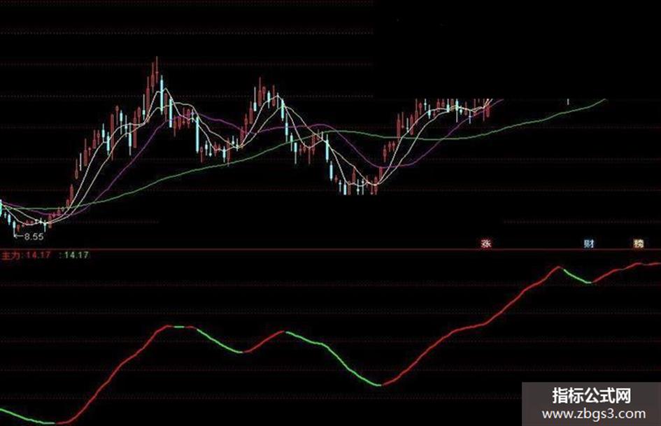 IF(主力<=REF(主力,1),主力,DRAWNULL),COLORGREEN,LINETHICK2;