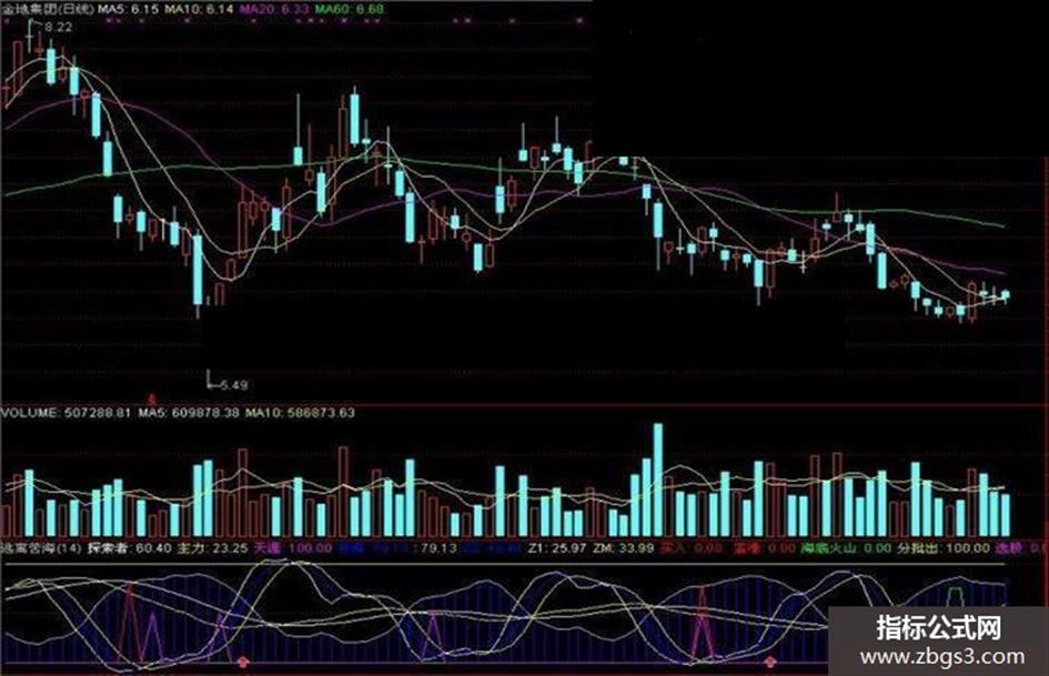 苦海: EMA(100*(HHV(HIGH,14)-CLOSE)/(HHV(HIGH,14)-LLV(LOW,14)),6),LINESTICK,COLORFF0000;