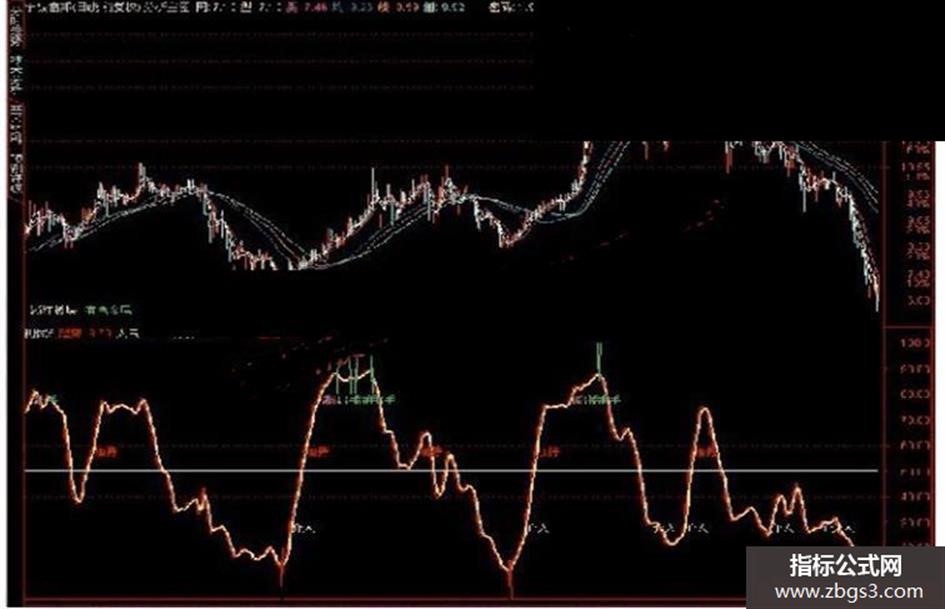 低吸: IF(CROSS(趋势,人气) AND 趋势<15,20,0),COLORRED;