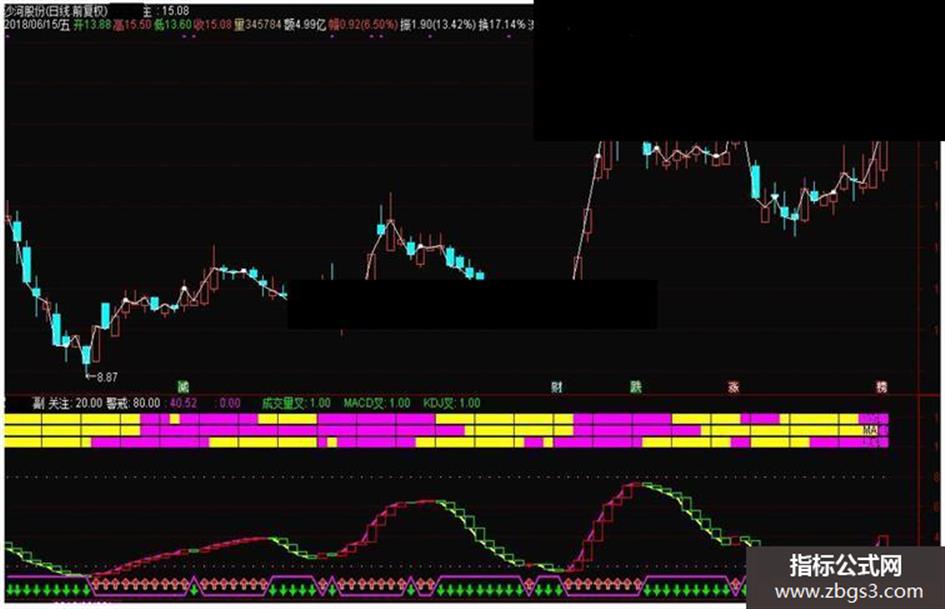IF(趋势>=REF(趋势,1),0,13),COLORFF00FF,LINETHICK2;