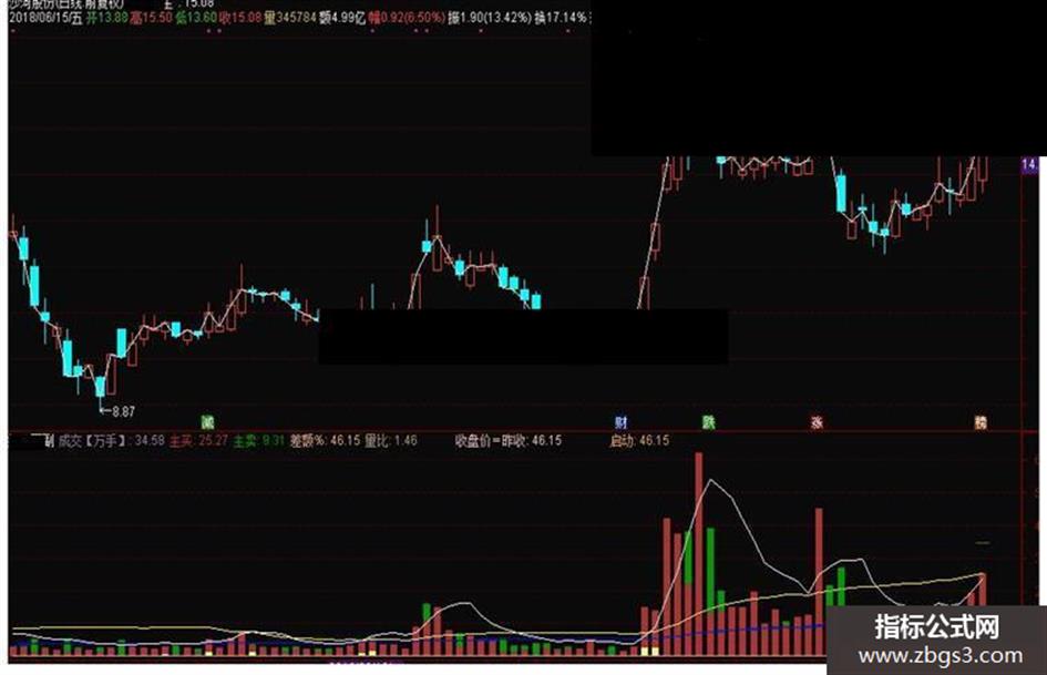 主动卖盘柱形:STICKLINE(主动卖>=0,0,主动卖,2.0,0),COLOR009900;