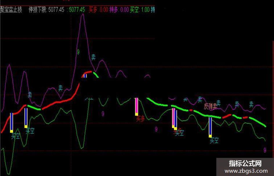 股市低迷,期指是T+0,可买涨买跌。聚宝盆止损指标是期指聚宝盆一组指标中的一个附图,现提供指标源码下载,无密码,不加密,无未来函数。红色曲线表示持多,绿色持空,买多后出现买空表示平仓,买空后出现买多平空仓,清晰明了。用过后就知道是否精准,及时和有效。