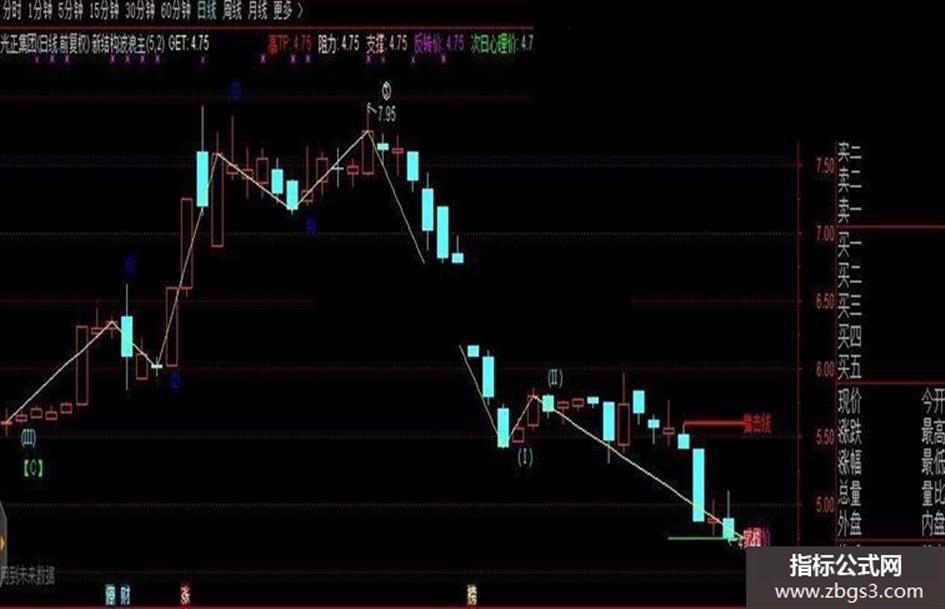 反转价:DRAWLINE(S>1&&CURRBARSCOUNT=5+1,反,ISLASTBAR,反,1),COLORDD00DD;