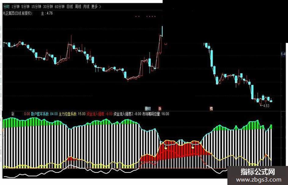 资金流入强度2:IF(ZJLRQD<10,ZJLRQD,DRAWNULL),LINETHICK2,COLORWHITE;