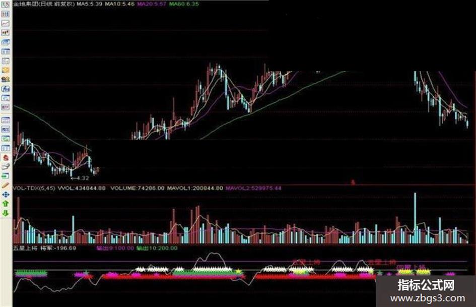 DRAWTEXT( FILTER(D3>100 AND A1>A2 AND A2>A3 AND A3>A4,13),180 ,'五星上将' ),COLORRED;