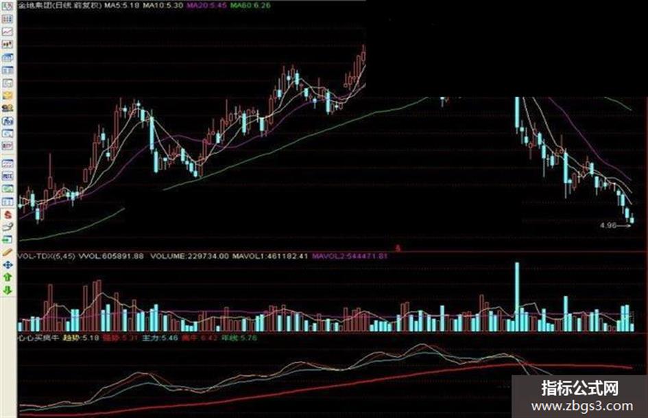 疯牛: DMA(MA(CLOSE+REF(CLOSE,5)/CLOSE*0.098,90),VOL),LINETHICK2,COLORRED;
