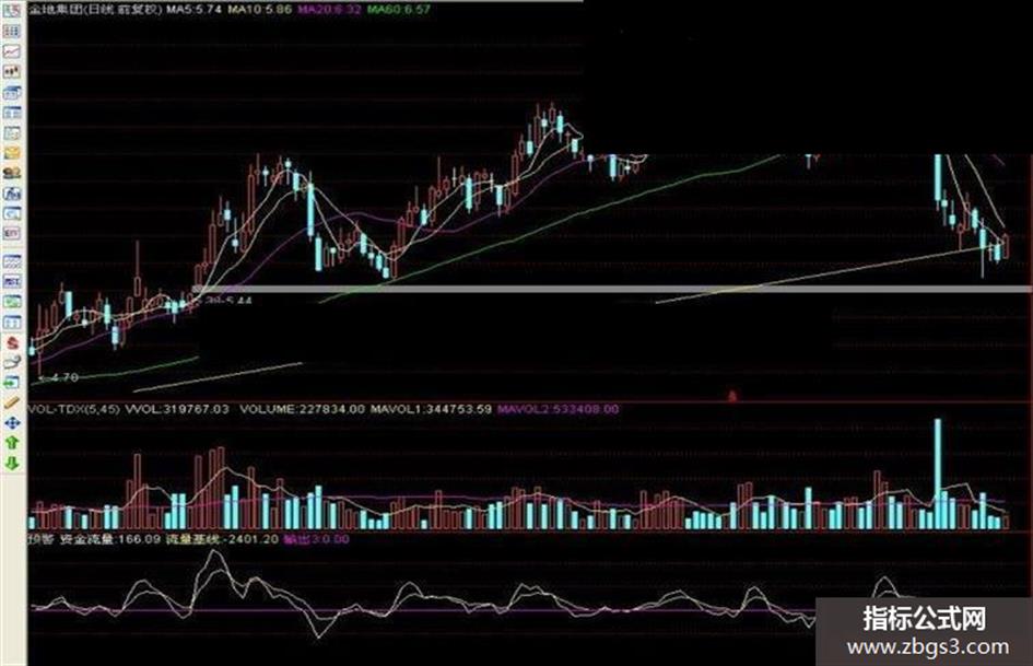QJJ:=(VOL / (((HIGH - LOW) * 2) - ABS((CLOSE - OPEN))));