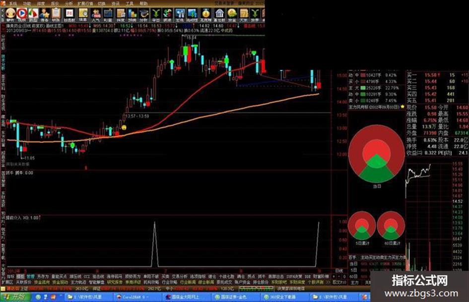 M15:=MA(C,15),COLORFFFF00,LINETHICK1;{黄色}