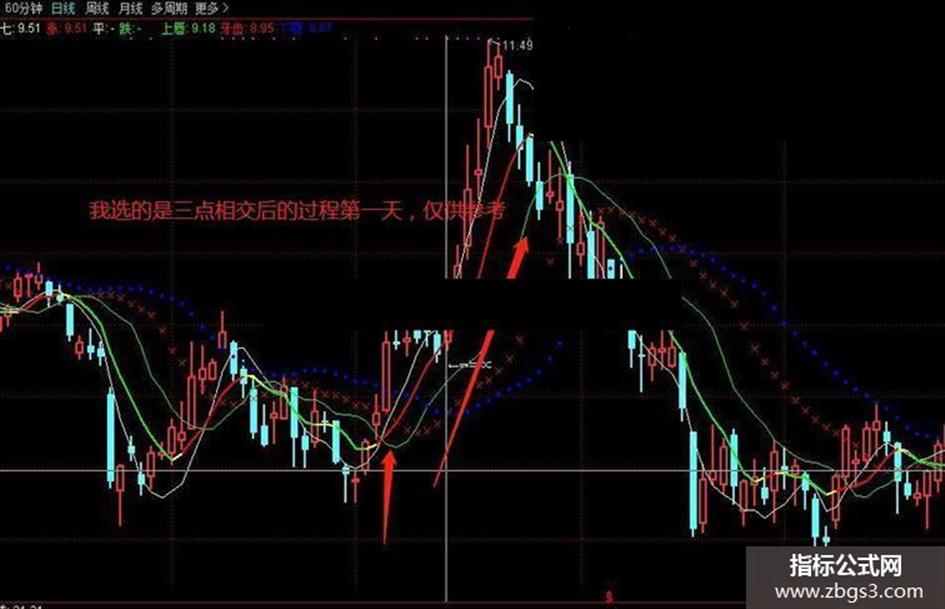 我选的三点交叉,做的选股公式。