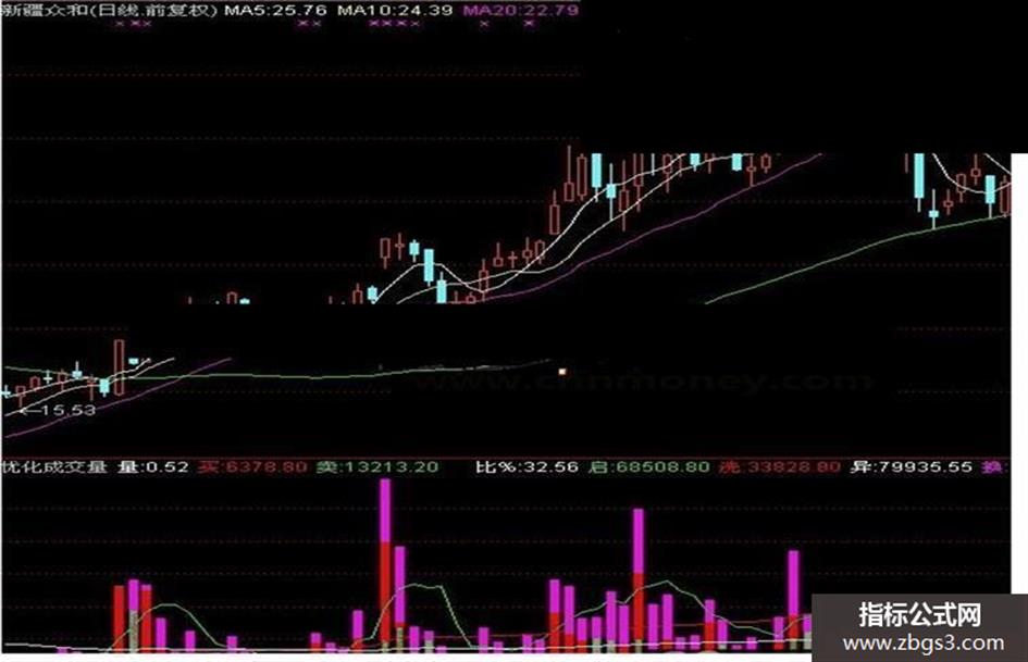 买:IF(CLOSE>OPEN,VAR1*(HIGH-LOW),IF(CLOSE<OPEN,VAR1*((HIGH-OPEN)+(CLOSE-LOW)),VOL/2)),COLORRED,POINTDOT;