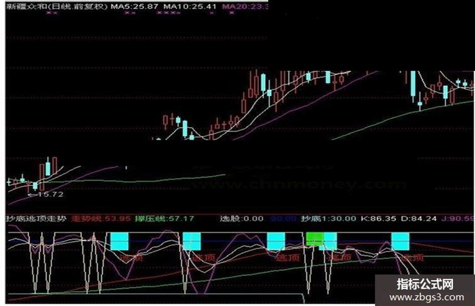 抄底逃顶走势(走势线、撑压线)-指标公式源码