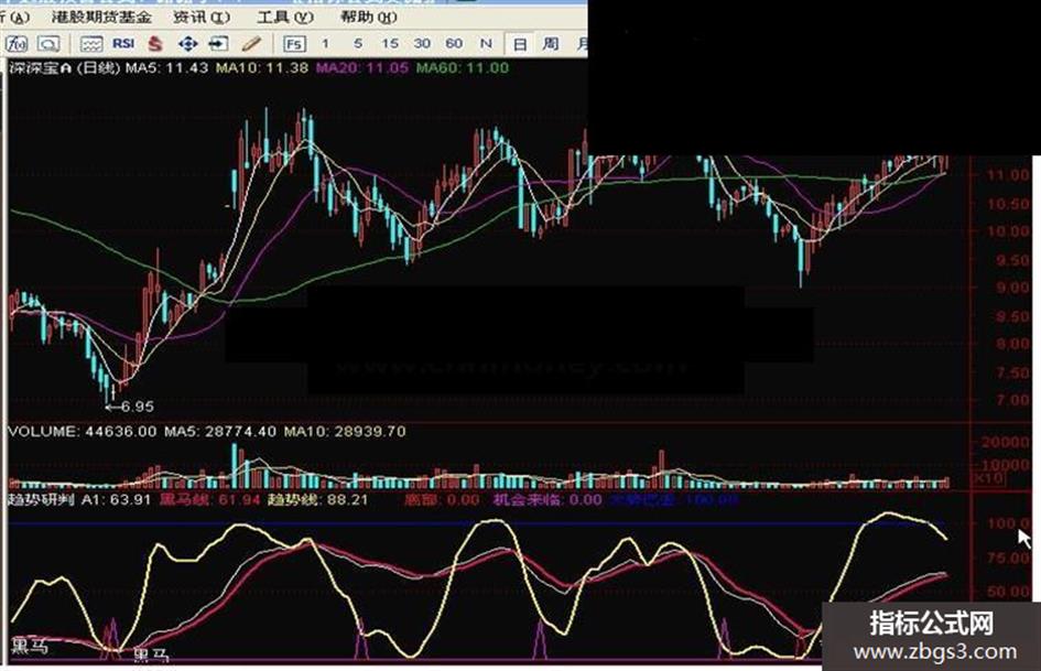 黑马线:EMA(A1,5),LINETHICK2,COLOR6600FF;