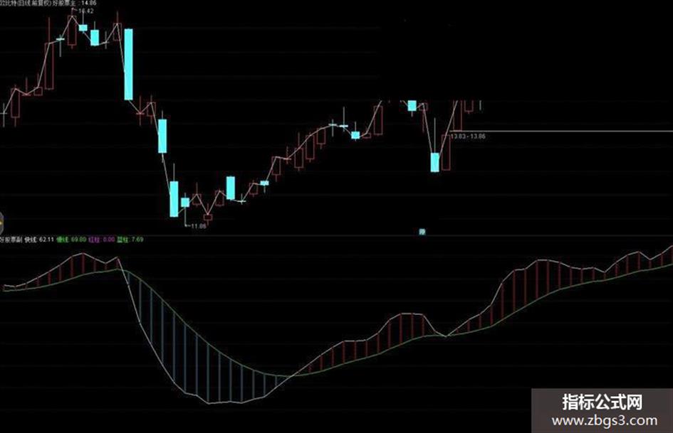 3,副图指标的结合运用:副图指标我是沿用MACD的原理设计而成。故如是红柱区二次放量的信号可积极关注,红柱区域内如快线一直向上抬头,可持有信号,如快线横向平行,或有向下走的迹象。短线可快速抛出。这个需要个人的盘中感觉得把握。特殊情况除外!