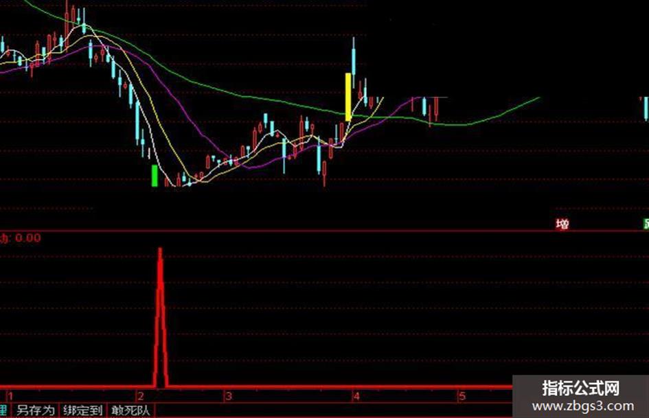 启动:=(A1 AND B1 AND REF(C/REF(C,1)<0.965,1) AND O>REF(C,1)*1.015)*80 COLORRED LINETHICK3 ;