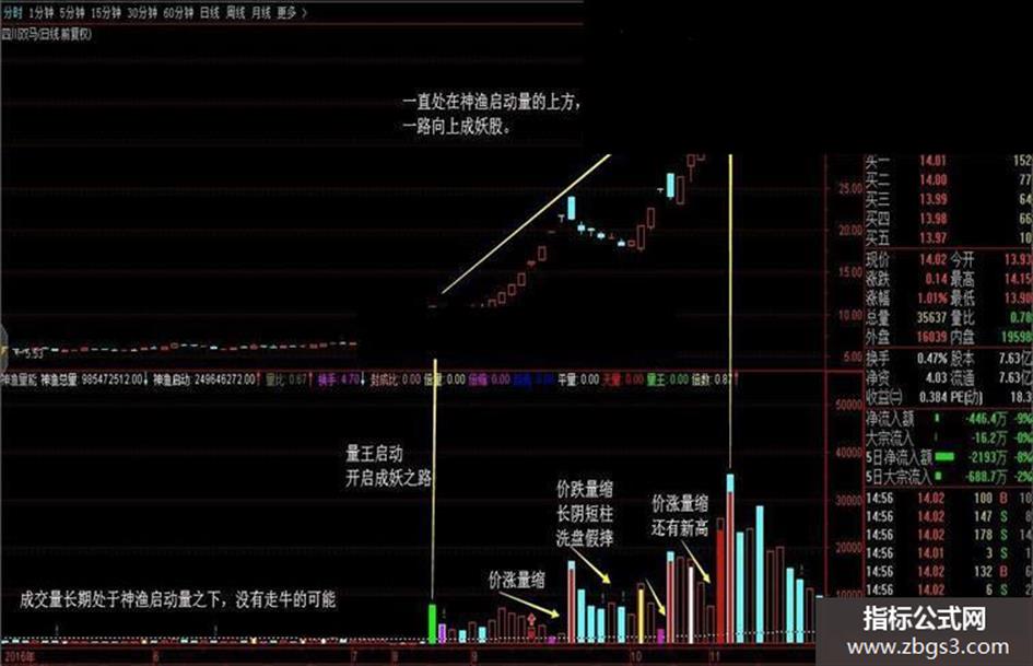 与传统的系统成交量指标比,神渔量能指标把成交量的变化规律用不同的颜色标示区分出来,并引入倍量、缩量、平量、百日低量、天量、量王的概念,使成交量的变化规律无所遁形,一目了然;传统的系统成交量指标用的是成交手数(受除权除息增发影响失真比较大),而神渔量能指标启用成交金额,更能真实的反应当天的成交情况,并弃用传统的一些指标线,独创一条动态的神渔启动线,成交量只有超过这条启动线,才有走牛的可能,这就给我们及时发现和抓住牛股、妖股提供了一个难得的契机,是量学喜爱者“攻城掠地”的必备良器。本指标参考了量学的成交量指标思路,在此表示诚挚的谢意!