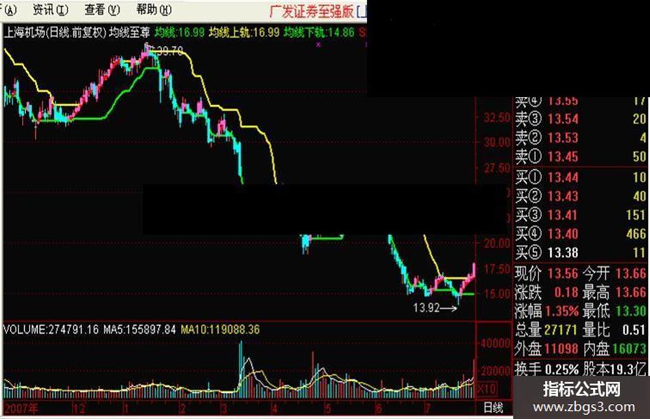 均线上轨:HHV(均线,14),LINETHICK2,COLORYELLOW;