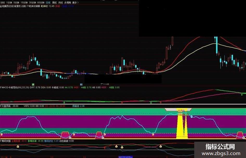 乾坤线:EMA(CLOSE,VAR2),COLORYELLOW,LINETHICK2;