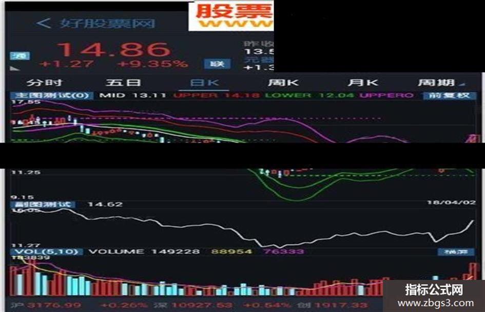波谷:IF(T2,B,B),COLOR80FF00,POINTDOT;