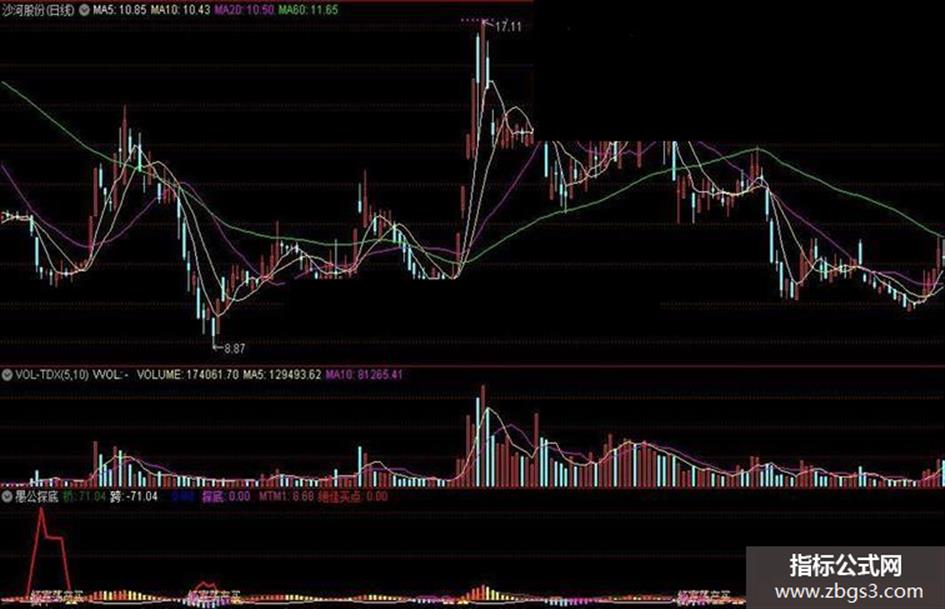 探底:IF((趋势<=5),58,0),COLORFF00FF;