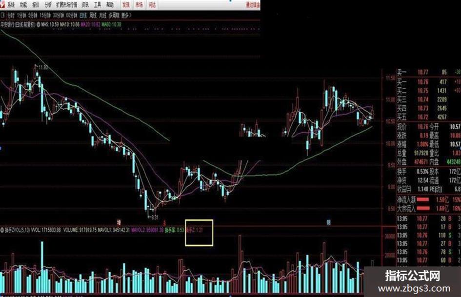 换手ZVOL,带换手Z的成交量指标,用于券商普通行情软件