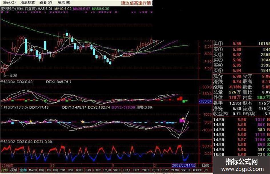 预警:DDY>0 AND CROSS(DDY1,DDY2) AND DDY1<0,LINETHICK;