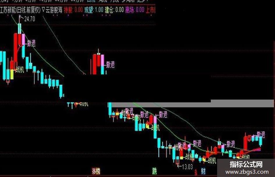 DRAWTEXT(VAR1A,REF(CLOSE,1)+0.1,'←撤退'),COLORFF99FF;