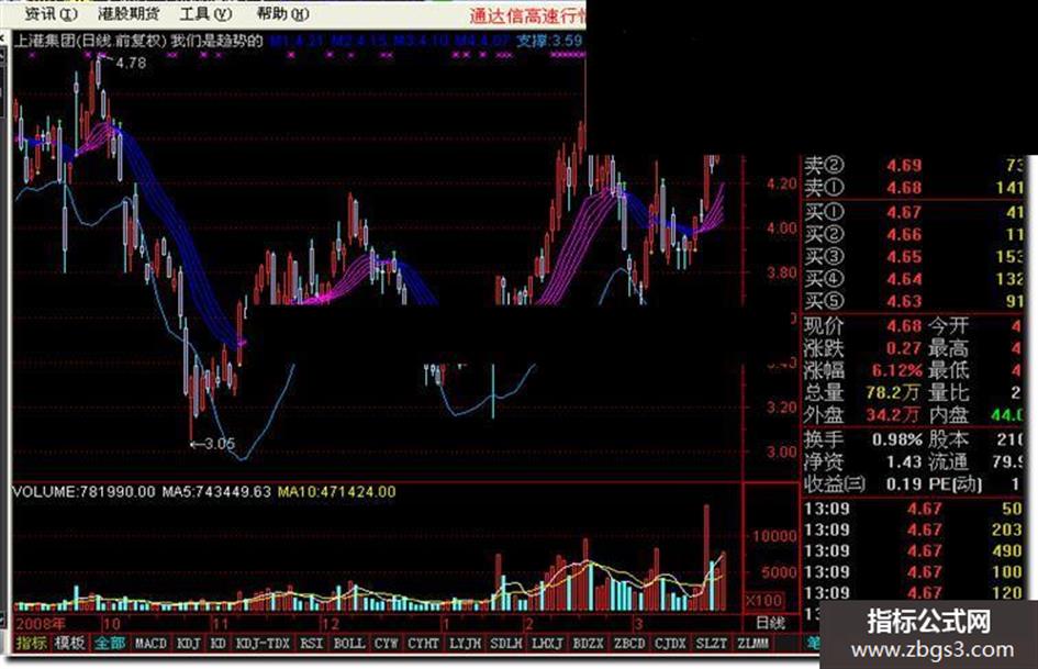 支撑:EMA(HLC*2-HV,3),COLORE99A2C;