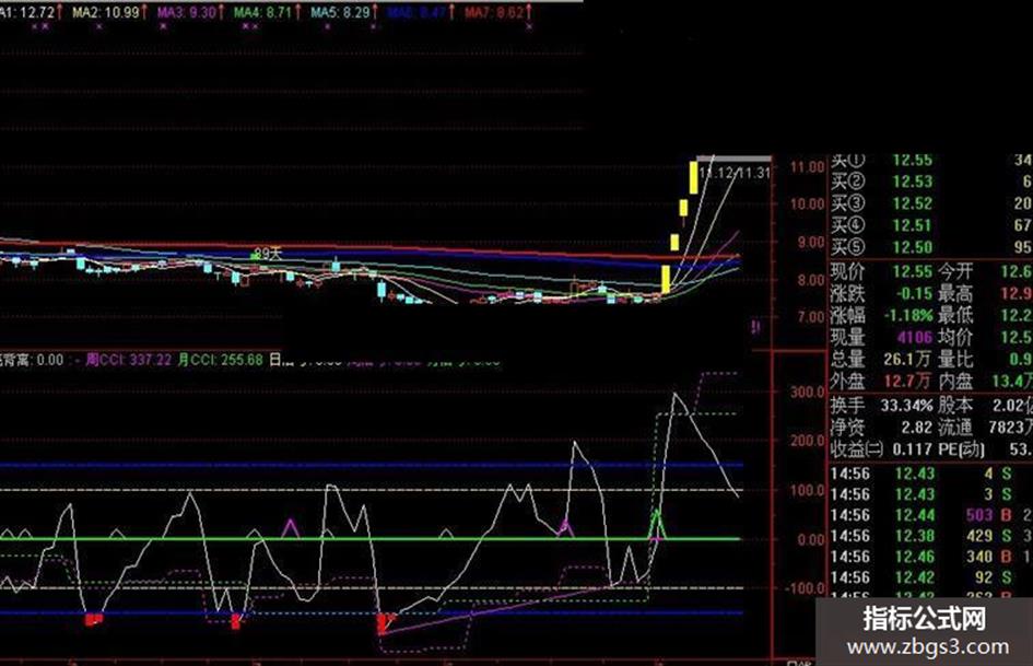 首先感谢平平200911老师给的启迪,本人添加了更为直观的信号指示。至于周CCI,月CCI隐形函数的问题,个人认为正像平平老师说的运气好的话会翻倍。只要抓到强势股,这些信号不会消失的,参考价值还是很大滴。认同本人的观点的童鞋,加分顶顶吧