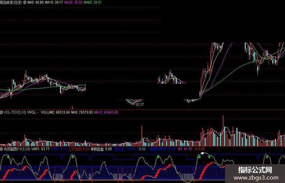上升在即: IF(CROSS(VAR1,VAR2),50,0),STICK,COLOR0000CC,LINETHICK2;